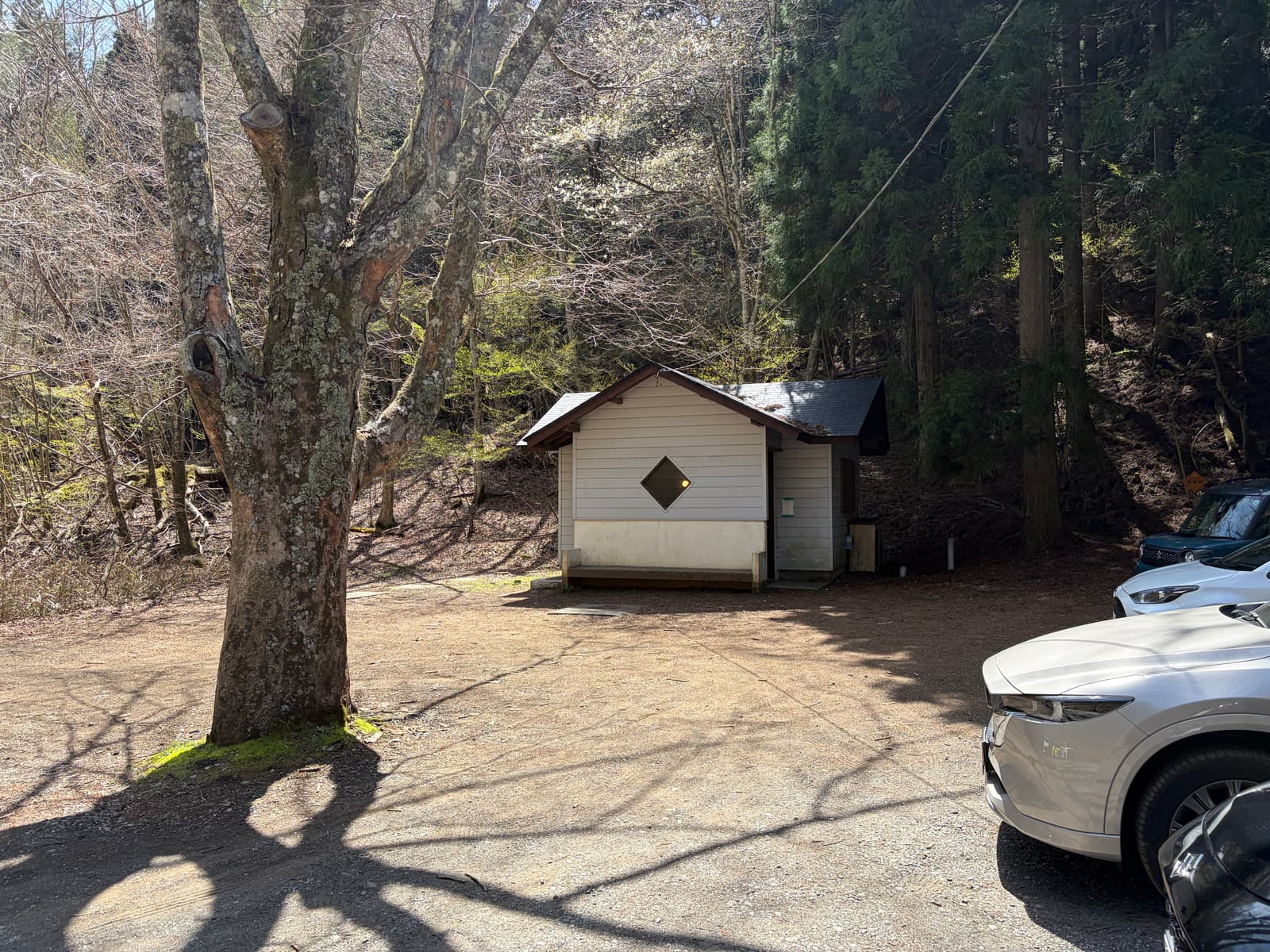 トイレは駐車場内にあります。登山道に入ってしまうと気軽に立ち寄れる設備はないので、出発前にここで済ませておくのが安心です。