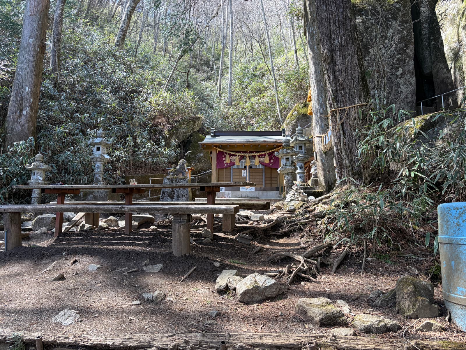 登山道を登っていくと、石割神社に到着します。山の中に静かにたたずむ小さな社で、ここまでの道のりとはまた違った厳かな空気がありました。