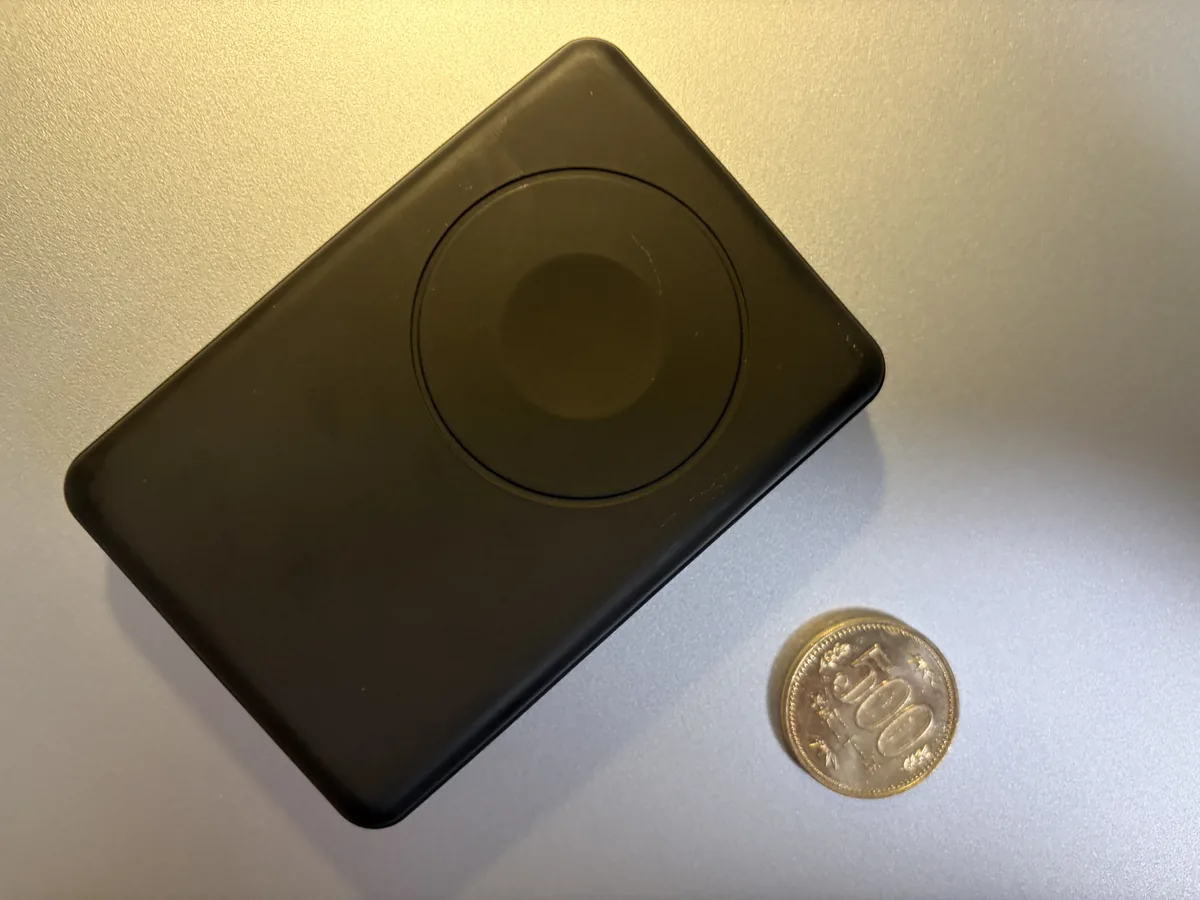 500円玉と並べると伝わりますが、サイズはカード2枚分ほどのコンパクトさ。 ザックのヒップベルトポケットやフリースの胸ポケットにも収まりやすく、 取り出しやすさの面でも気に入っています。