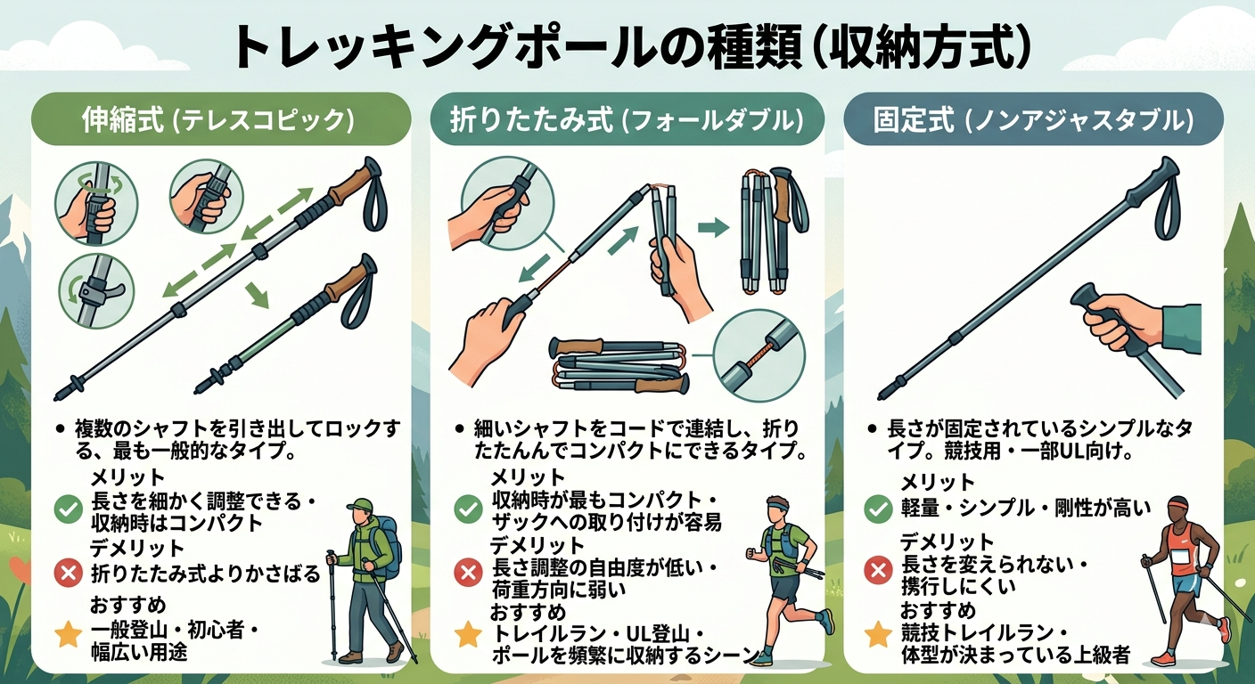 - トレッキングポールの種類(収納方式)